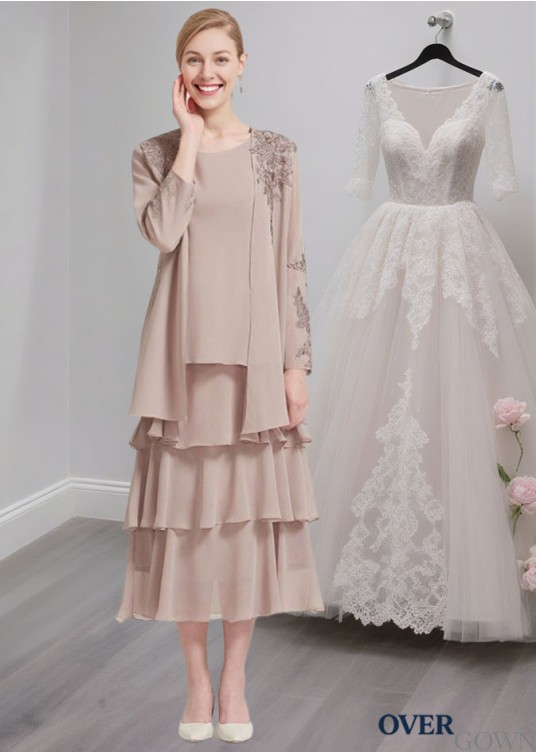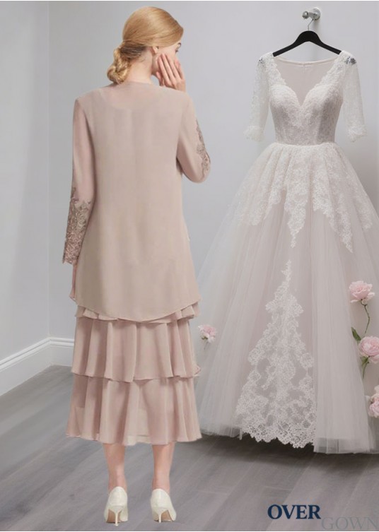 Tea-Length Chiffon Mother of the Bride Dress with Jacket and Appliqued Ruffles