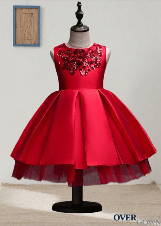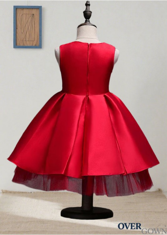 Tea Length Red Ball Gown Flower Girl Dress Satin