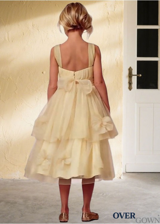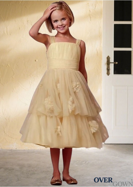 Tea-Length Yellow Ball Gown Flower Girl Dress Tulle & Taffeta