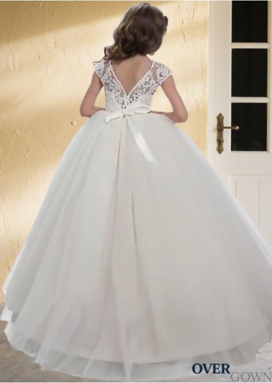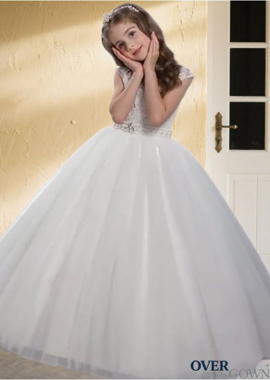 Tulle Ball Gown Sleeveless Floor-Length Flower Girl Dress with Beading