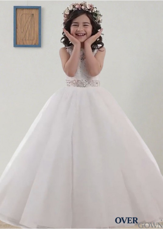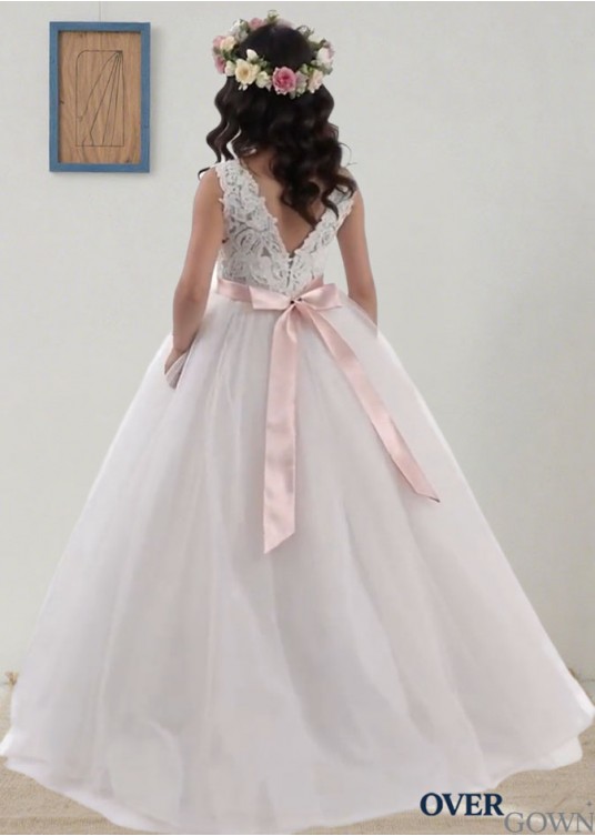 Elegant Tulle Ball Gown Flower Girl Dress with Sash for Wedding