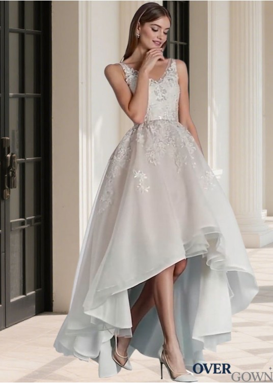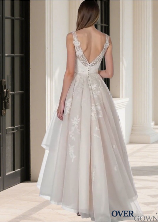Tulle Asymmetrical Hi-Lo Beach Wedding Dress Sleeveless A-Line Silhouette