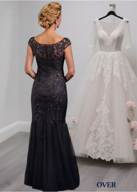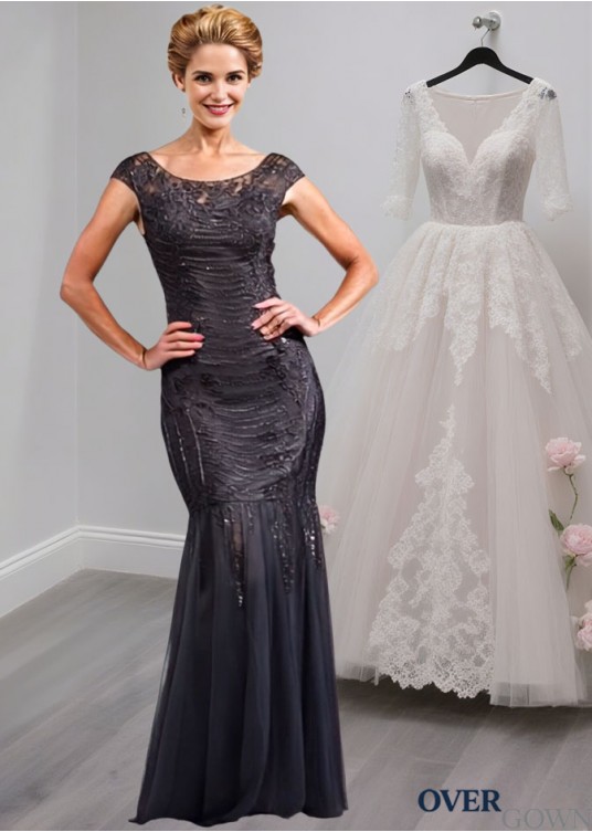 Tulle Mermaid Mother of the Bride Dresses – Trumpet Gown with Cap Sleeves