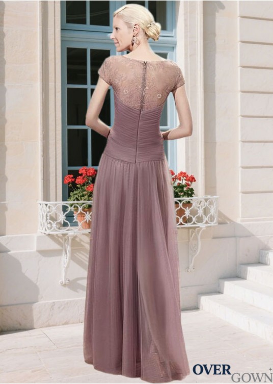 V-Neck Cap Sleeve Tulle & Satin A-line Full Mother Dress