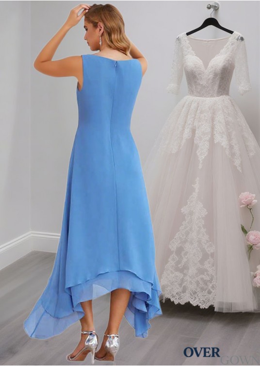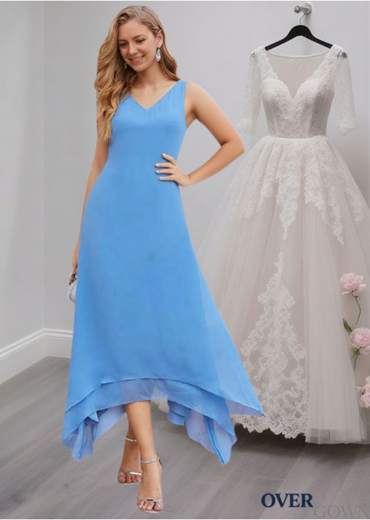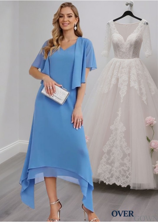 Chiffon A-Line V Neck Asymmetrical Mother of the Bride Dress with Jacket