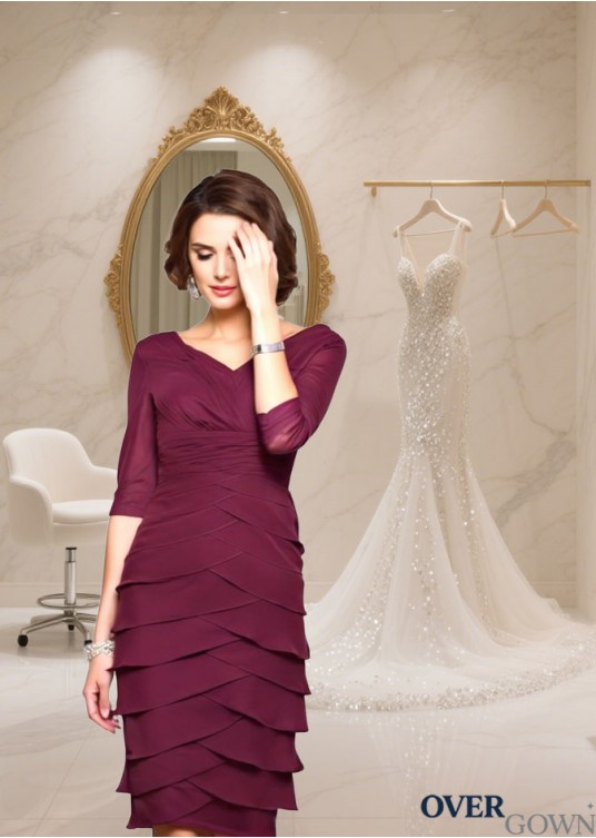 V-Neck Knee-Length Chiffon Formal Dress with Half Sleeves for Women