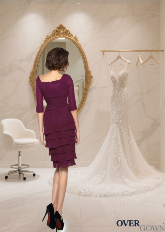 Elegant Knee-Length Tulle Chiffon Mother of the Bride Dress with Cap Sleeves
