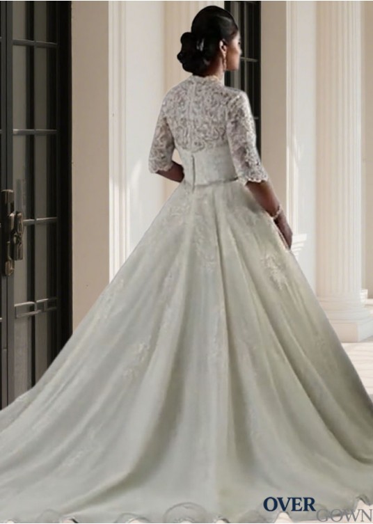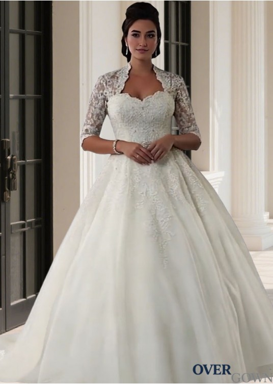 3/4 Sleeve Plus Size Chapel Train Bridal Gown