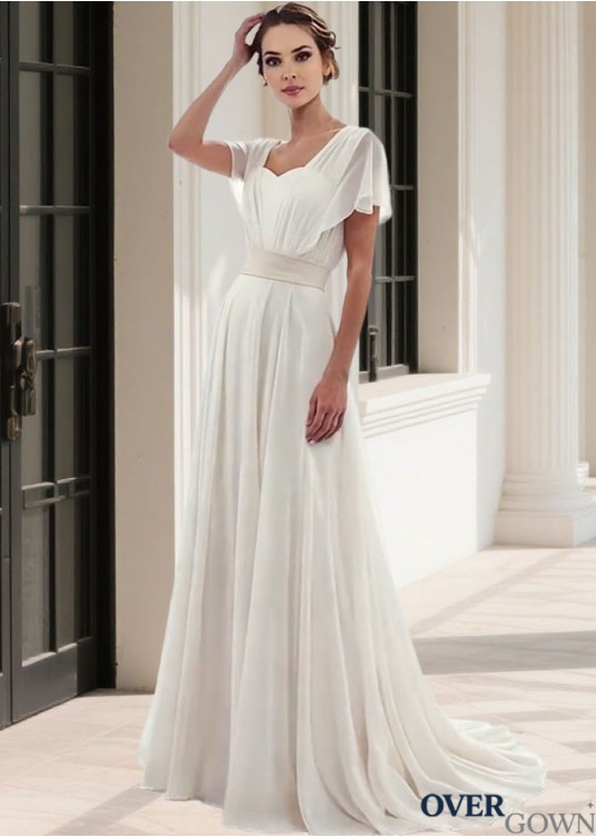 Cheap Beach Wedding Dress Natural Waist Chiffon A-Line