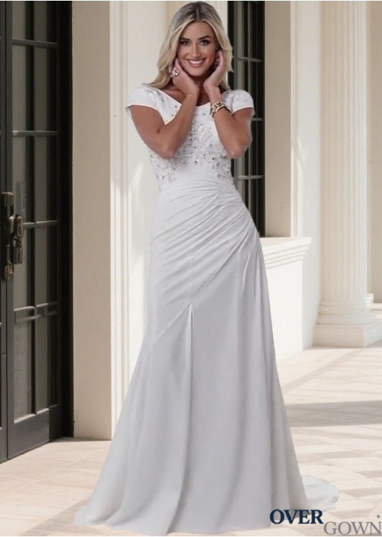 Chiffon A-Line Scoop Neck Beach Wedding Dress with Sweep Train