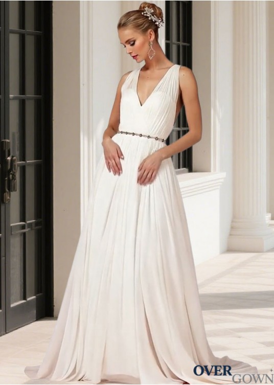 Full Length Chiffon Sweep Train Bridal Gown