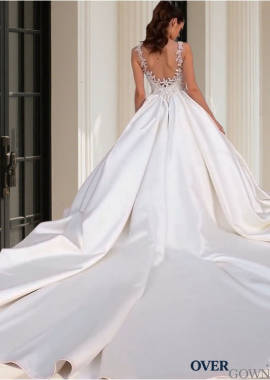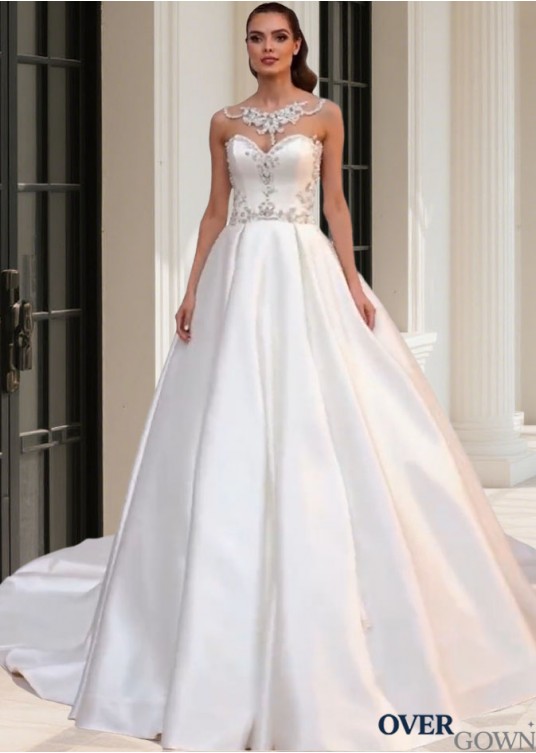 Elegant Scoop Neckline Tulle Satin A-Line Sleeveless Wedding Dresses