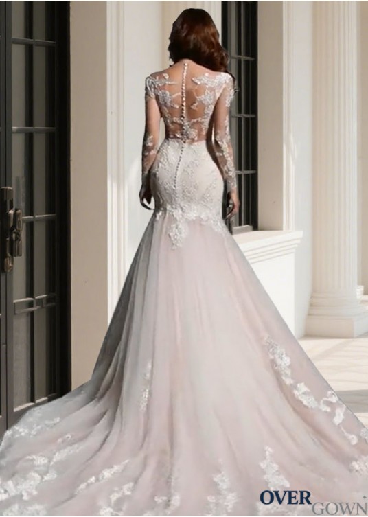 Full Length Beach Wedding Gown Tulle Long Sleeves