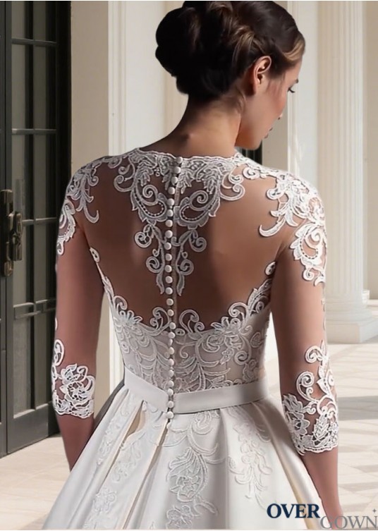 V Neck 3/4 Sleeves Tulle & Satin A-Line Wedding Dress – Bridal Gowns