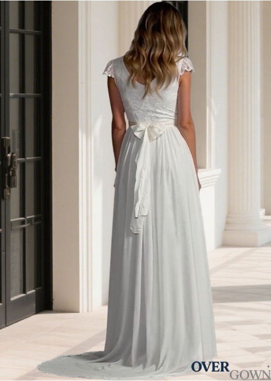 Elegant Lace and Chiffon A-Line Wedding Dress with Jewel Neckline