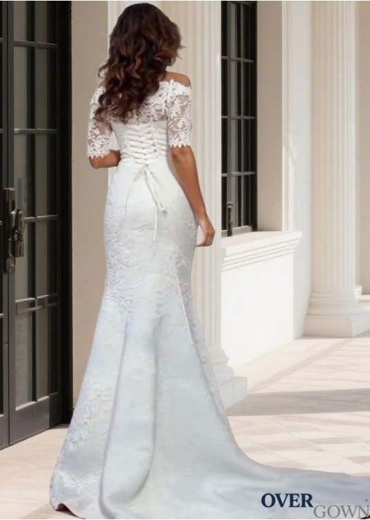 Off-The-Shoulder Lace Mermaid Wedding Dress with 1/2 Sleeves Bridal Gown