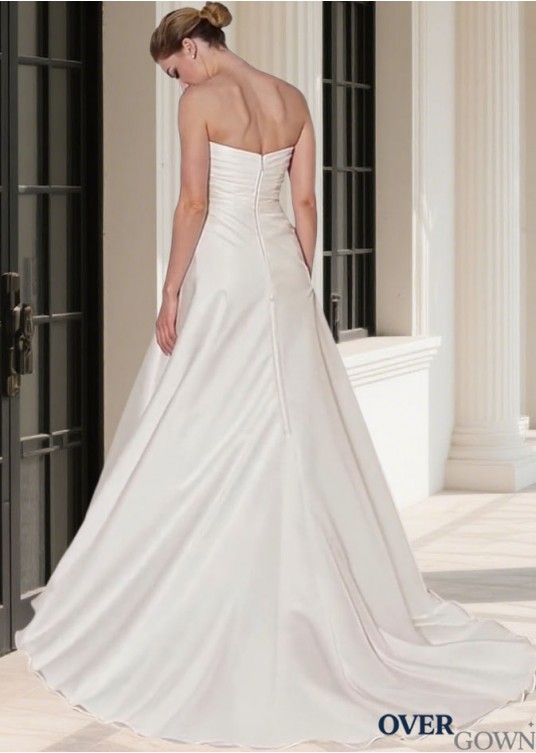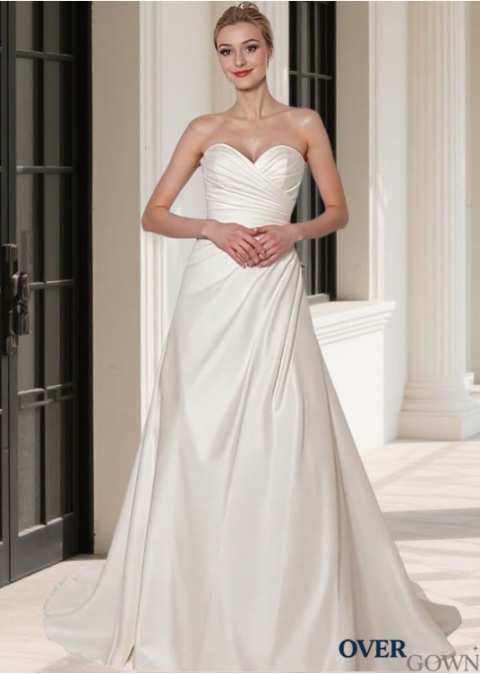Elegant Organza Satin Sweetheart A-Line Wedding Dress with Chapel Train