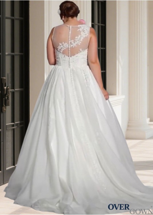 Plus Size Scoop Neck Tulle Wedding Dresses With Beading