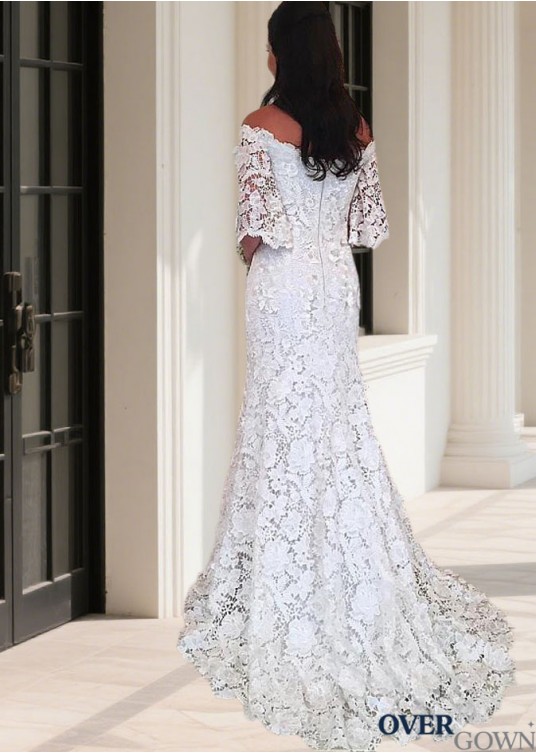 Off-The-Shoulder Women Mermaid Wedding Dress with 1/2 Lace Sleeves