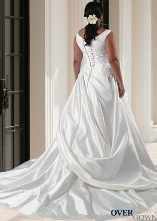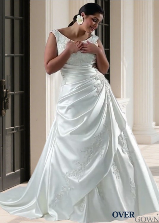 Plus Size V-Neck Full Length Wedding Dress for Brides with Appliques