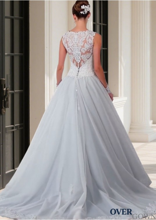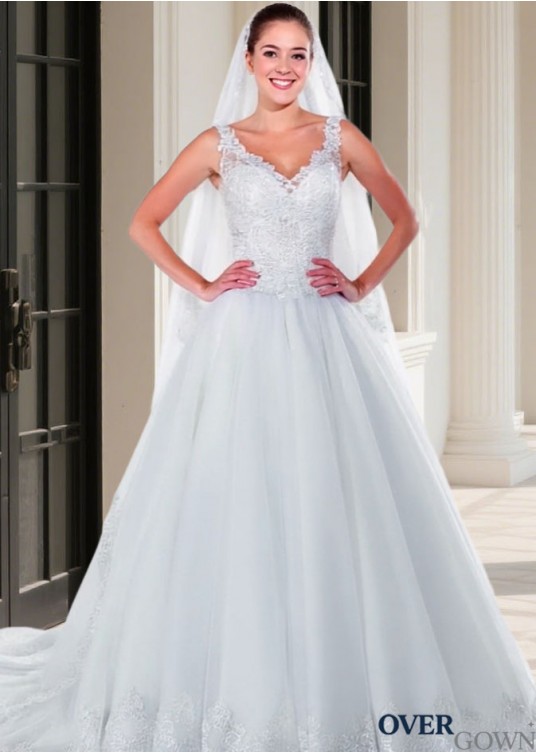 Plus Size V-Neck Tulle A Line Wedding Dress Sleeveless Chapel Train