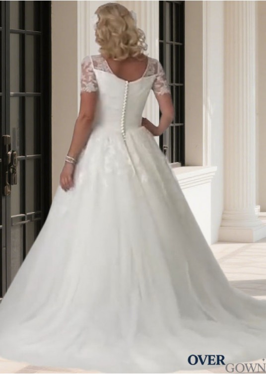 Plus Size Wedding Dress with Square Neckline and Short Sleeves – Bridal Gown