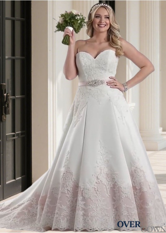 Satin Sweetheart Neckline Sleeveless A-Line Wedding Dresses with Appliques