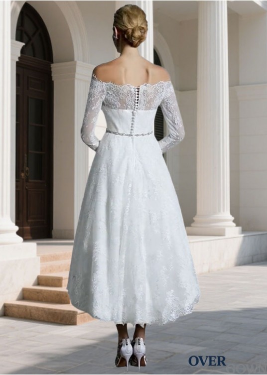 A-Line Off Shoulder Lace Wedding Gown Asymmetrical Hem