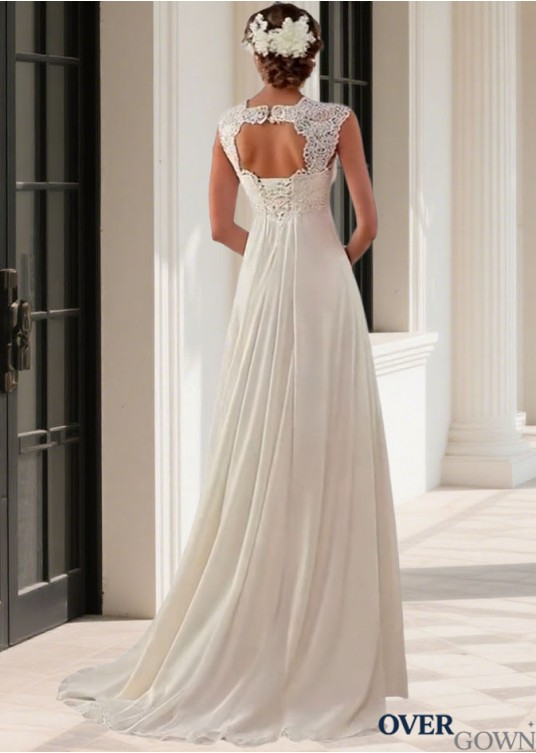 Empire Waist Chiffon Beach Wedding Gown Sweetheart Sweep Train