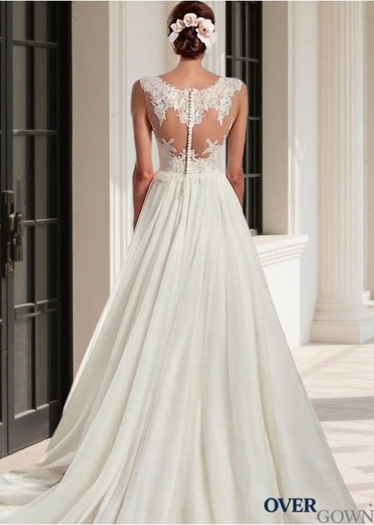 Short Cap Sleeve Tulle Satin Bridal Gown