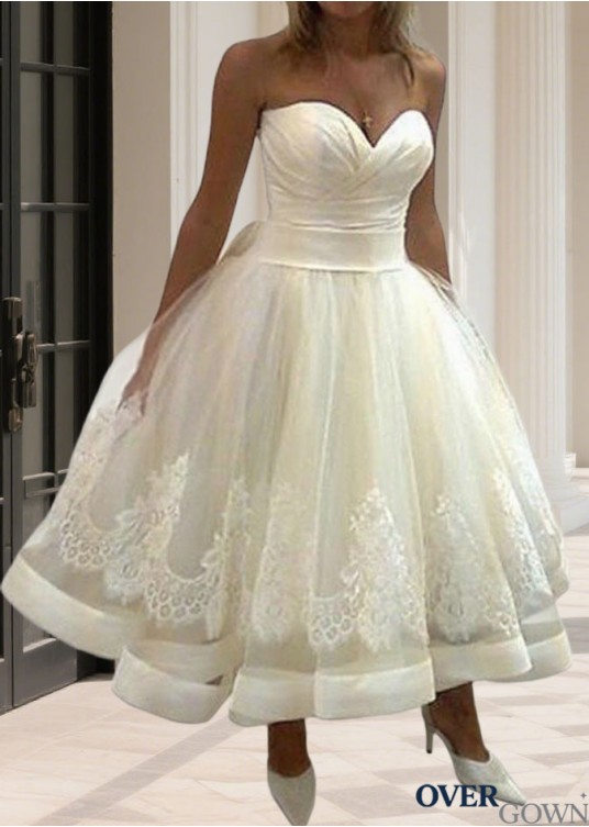 Short Plus Size Sweetheart Tulle Tea-Length Ball Gown with Applique