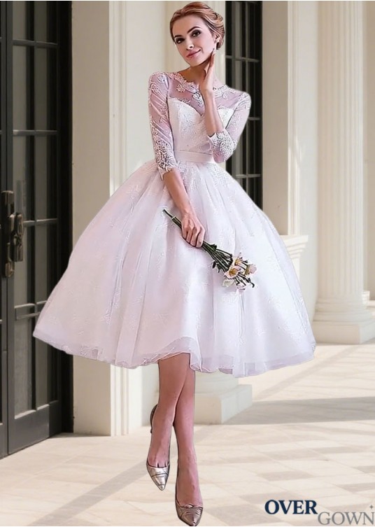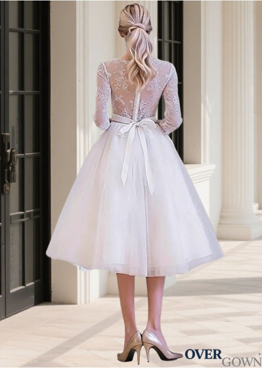 3/4 Illusion Sleeve Tea-Length A-Line Bridal Gown