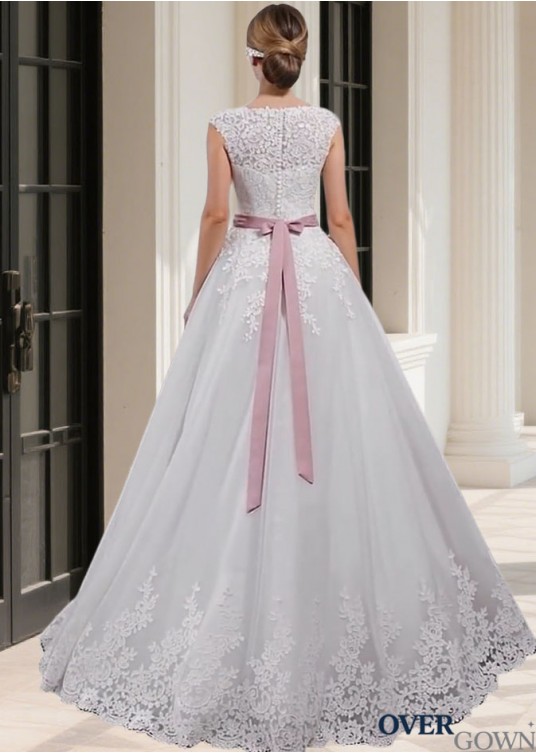 Elegant Sleeveless Tulle A-Line Beach Wedding Dress – Simple Jewel Neck Bridal Gown