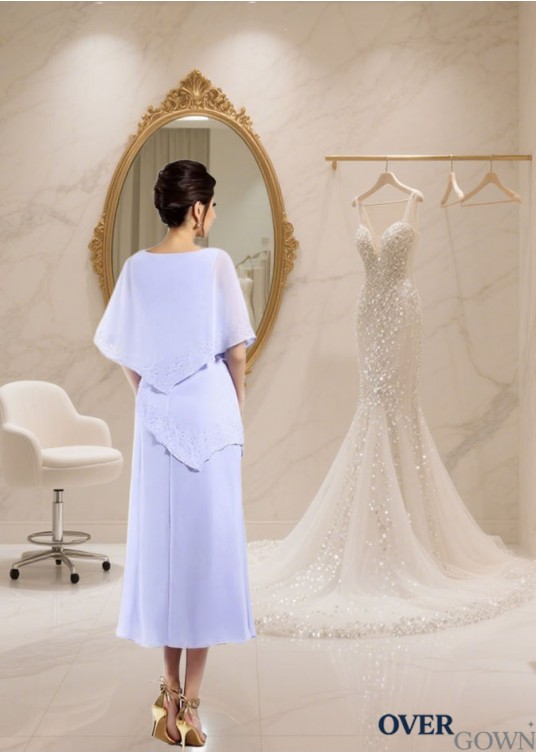 Elegant Bateau Neck Ankle-Length Chiffon Mother of the Bride Dress with Half Sleeves