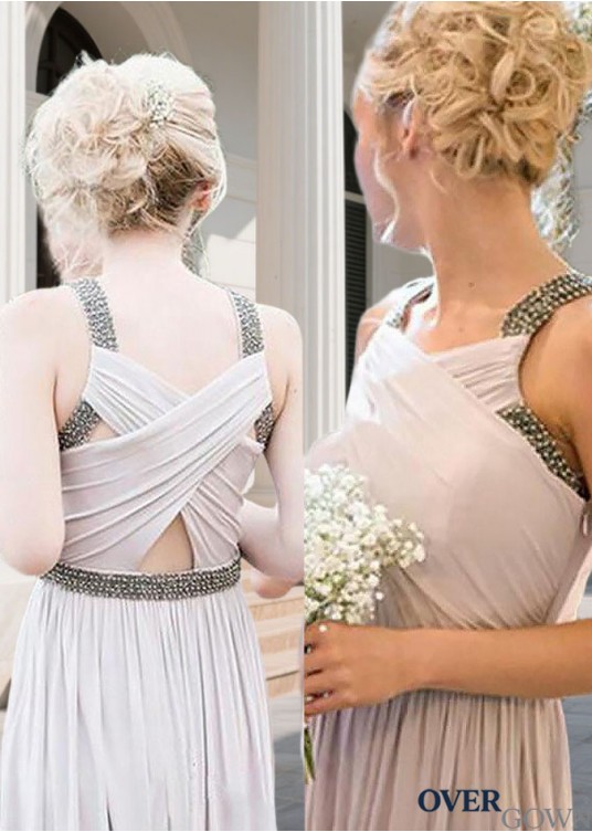 Elegant Chiffon Beaded Straps Neck Sleeveless A-Line Bridesmaid Dresses - Floor-Length Occasion Gowns for All Seasons