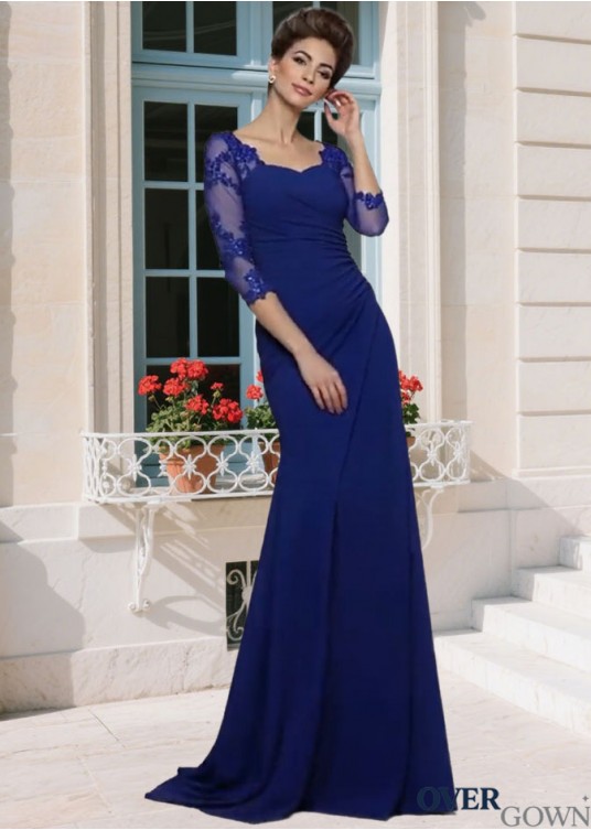 Elegant Chiffon Mother of the Bride Dress – Sweetheart Neck Trumpet Mermaid Gown with 3/4 Sleeves