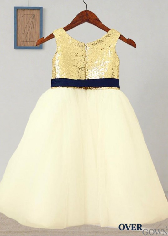 Sequin Tulle Flower Girl Dresses with Sash – A Line Gowns