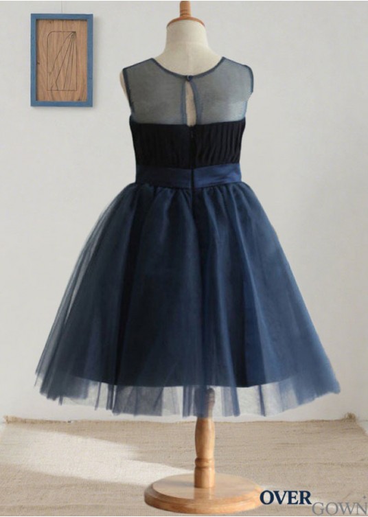 Tulle Jewel Neck Bowknot Sleeveless Ball Gown Flower Girl Dress
