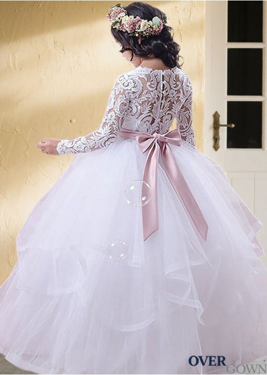 Tulle Jewel Neck Flower Girl Dresses – Long Sleeve Ball Gowns