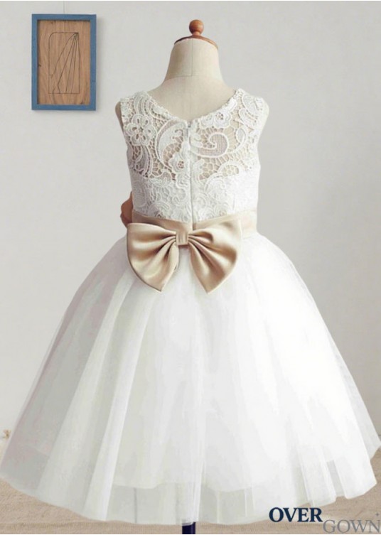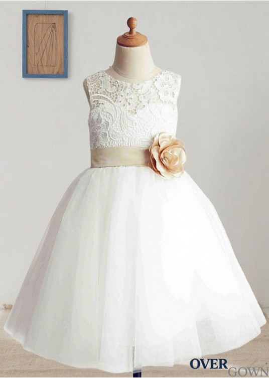 Tulle Flower Girl Dresses Knee Length with Lace and Appliques