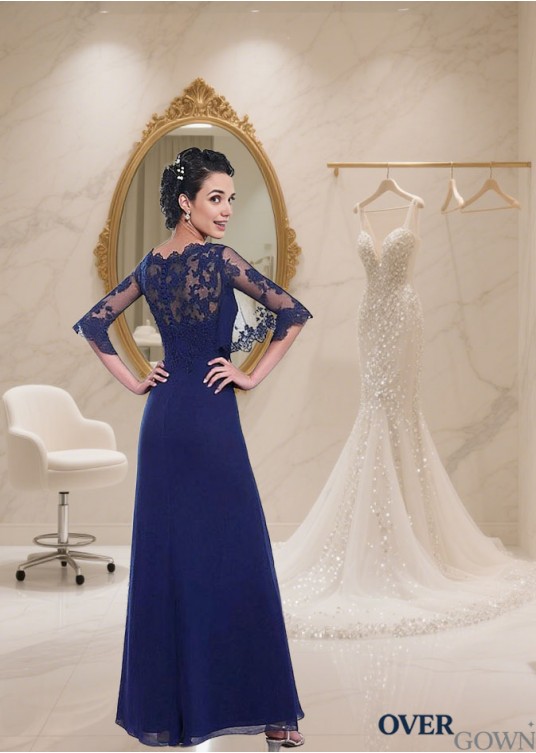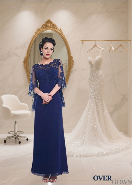 Ankle Length Tulle Chiffon Mother of the Bride Dress with Bateau Neck and Short Sleeves