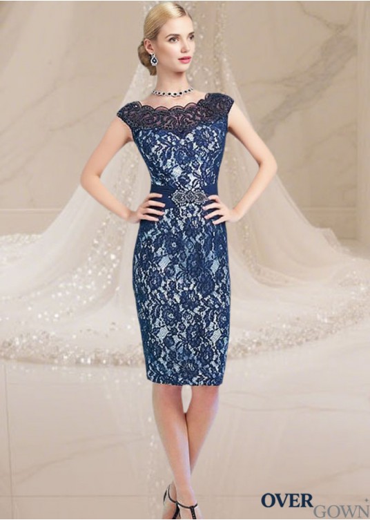 Elegant Blue Lace Chiffon Mother of the Bride Dress with Jacket – Knee Length