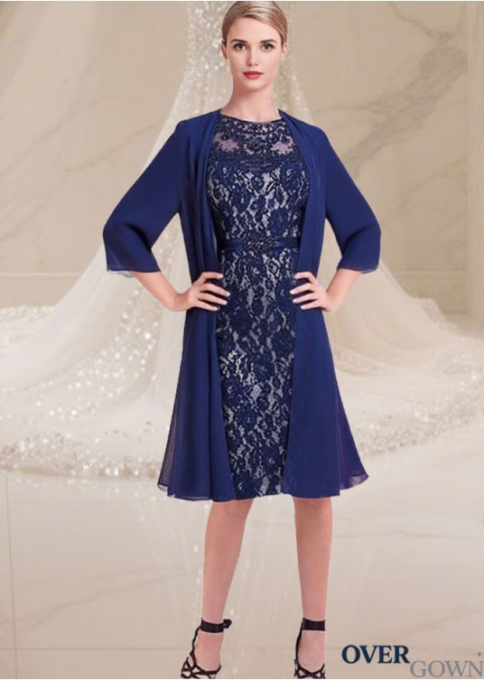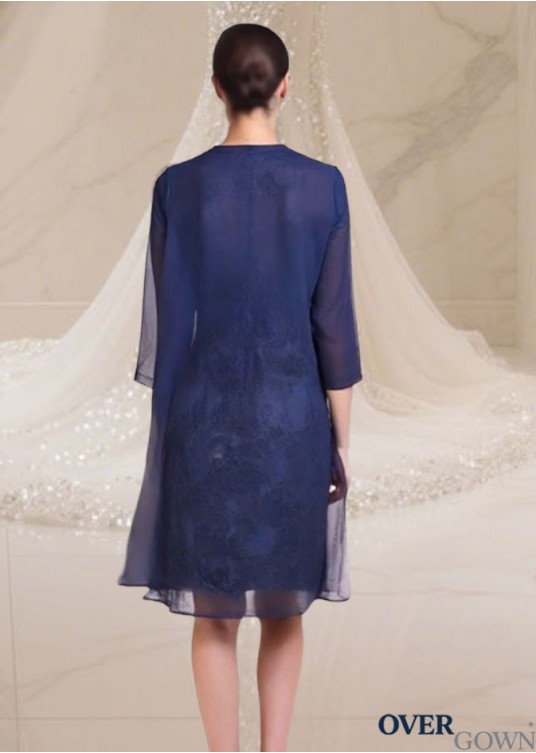 Elegant Two-Piece Lace Chiffon Mother of the Bride Dress – Knee Length Formal Outfit