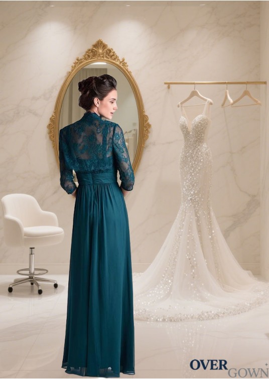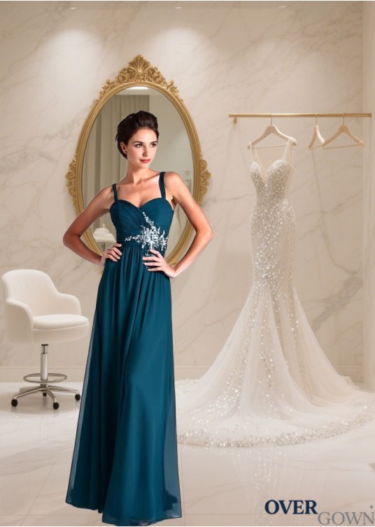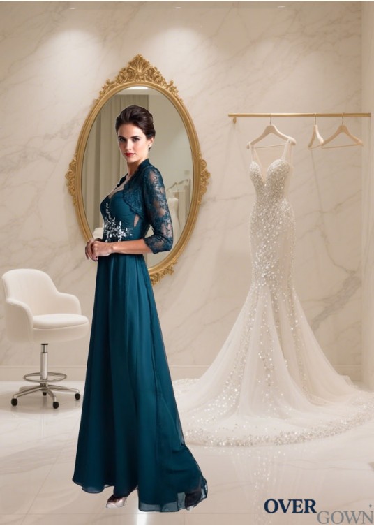 Full-Length Chiffon Mother of the Bride Dress with Jacket and Spaghetti Straps