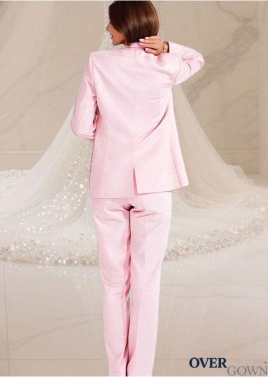 Elegant Pink Three-Piece Lace Satin Mother of the Bride Pantsuit with Jacket