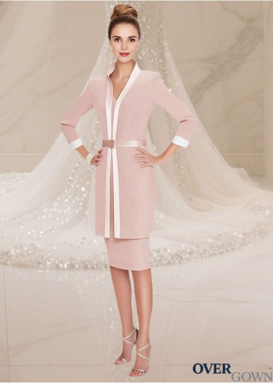 Satin Two-Piece Mother of the Bride Dress with Jacket Knee Length Sheath