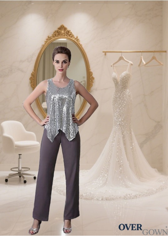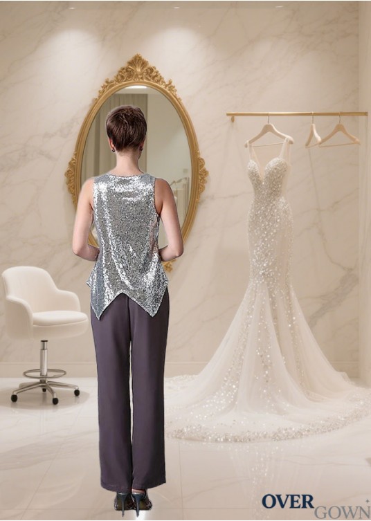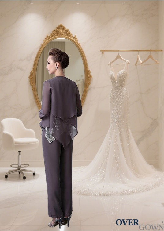 Elegant Sequined Lace Chiffon Three-Piece Mother of the Bride Pantsuit with Jacket