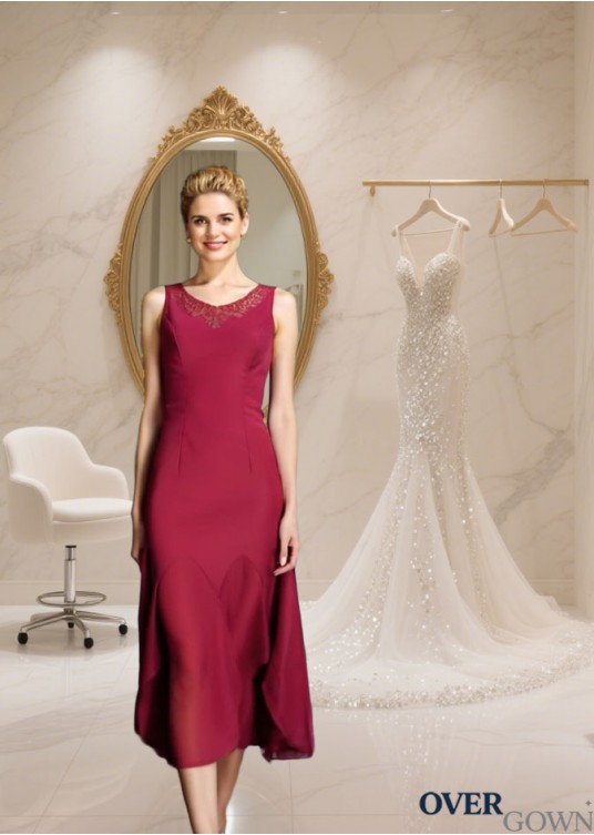 Scoop Neck Chiffon Tea-Length A-Line Dress - Elegant Formal Dress for Wedding or Party