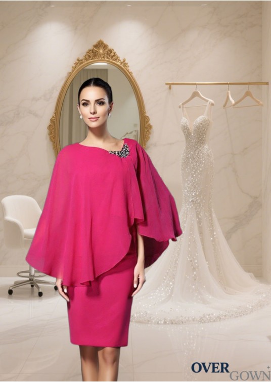 Scoop Neck Sleeveless Chiffon Knee-Length Mother of the Bride Dress with Beading