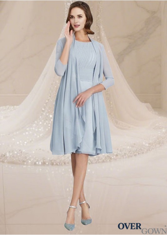 Elegant Knee-Length Chiffon Mother of the Bride Dress with Scoop Neckline